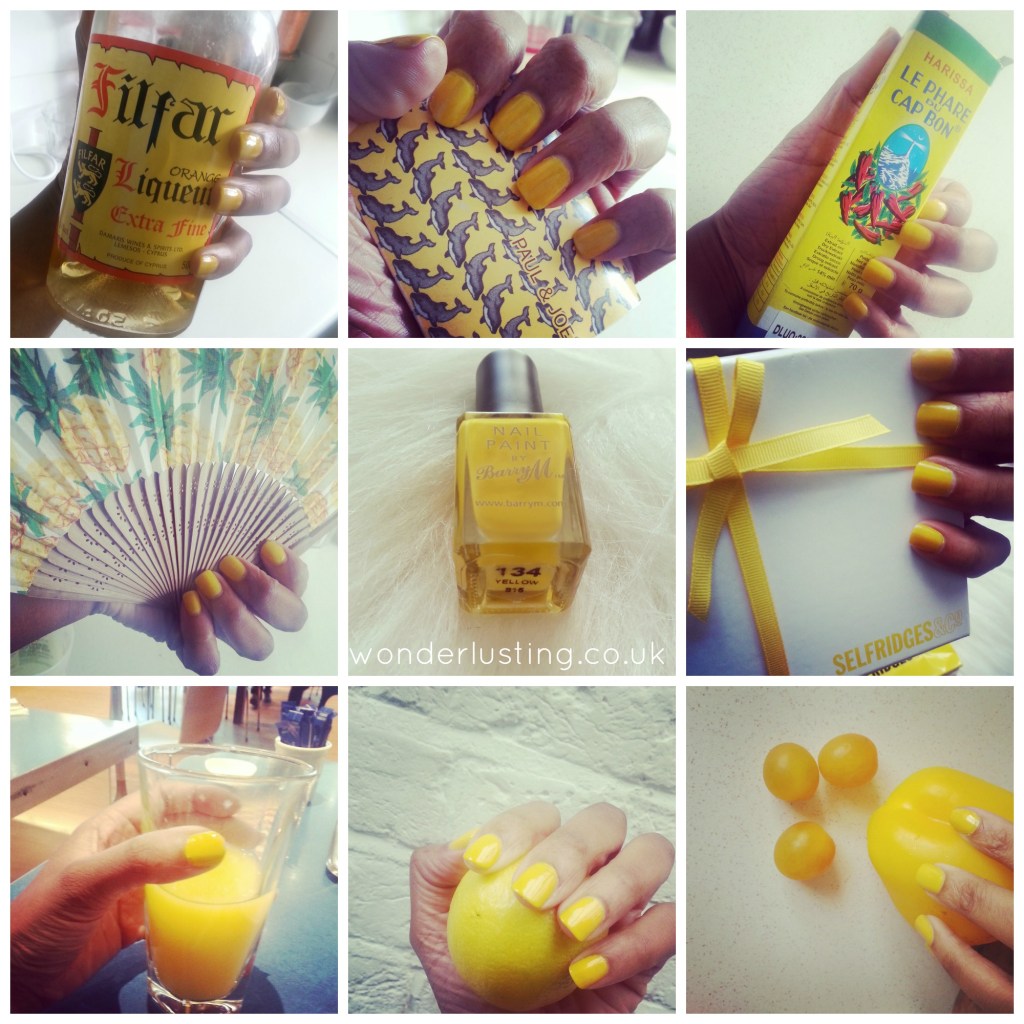 NB: Barry M nail paint yellow 134 is not available in shops or from Barry M directly but it is available on Superdrug’s website (though currently out of stock) and can be found easily online.