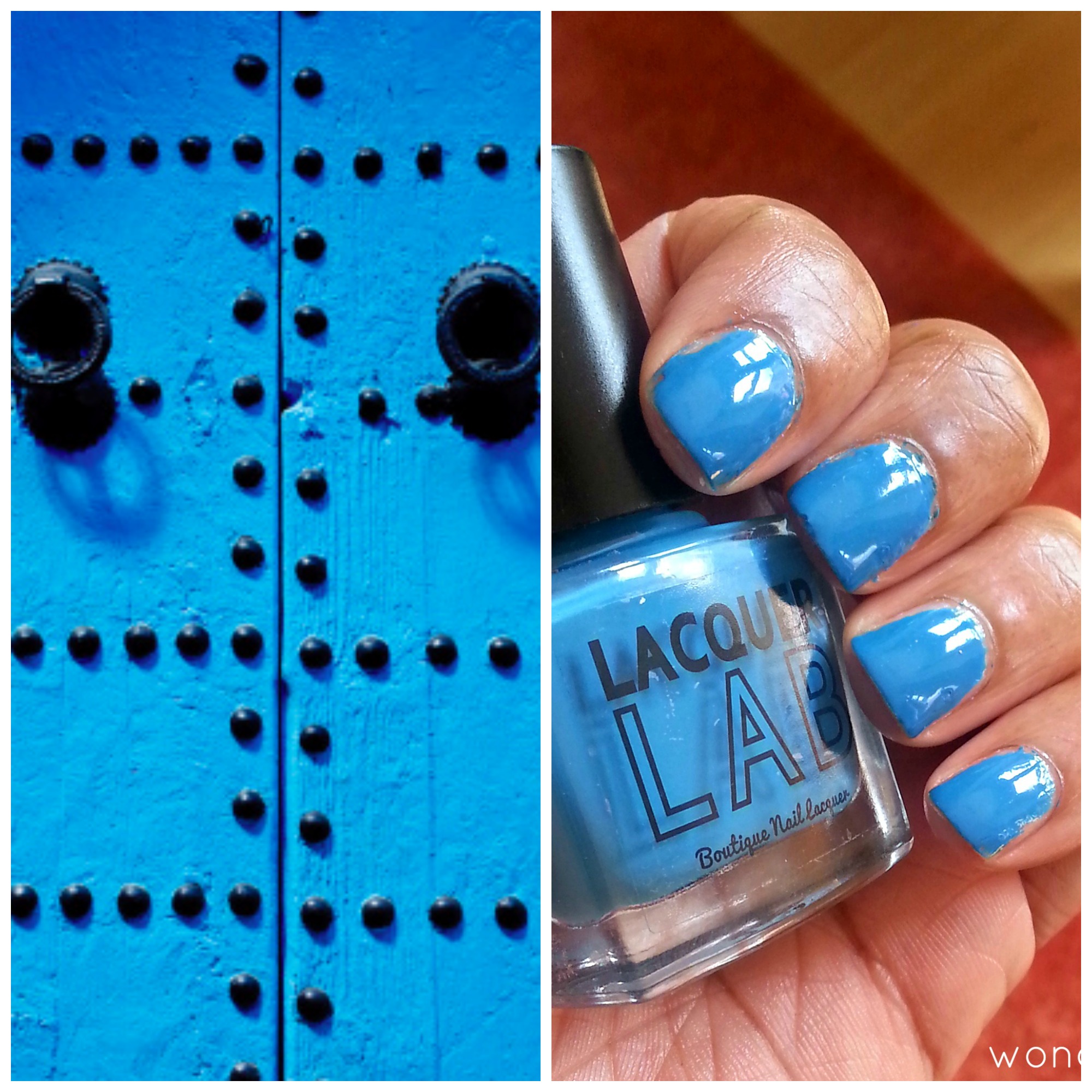 The Lacquer Lab Snake Charmer swatched. The blue hue was inspired by riad doors